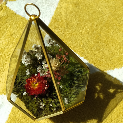 Transforma qualquer espaço num refúgio de beleza eterna. Este terrário geométrico não é apenas decoração — é uma experiência. Com musgo natural preservado e flores naturais sempre vivas, ele traz a natureza para dentro da sua casa sem exigir manutenção, rega ou preocupação. - Elegância minimalista - Beleza que nunca murcha - Um toque de vida que dura anos - Musgo e flores naturais Perfeito para quem quer um ambiente sofisticado, acolhedor e cheio de personalidade. Garante o teu agora e leva uma peça única que nunca perde o encanto. Características: Tipo: Terrário decorativo em vidro geométrico Conteúdo: Musgo preservado e flores secas/estabilizadas Manutenção: Nenhuma Estilo: Minimalista / Elegante Uso: Interior Dimensões: 17 cm (altura) x 11 cm (diâmetro)